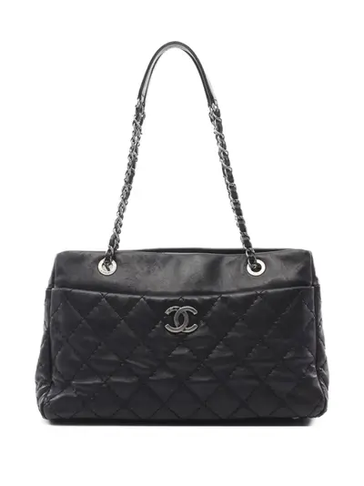 circa 2012-2013 black calf leather diamond quilting signature quilted interlocking CC logo concealed magnetic fastening two leather and chain-link top handles Serial Number:17984316 This item comes with an original Chanel authenticity card. Condition: GOOD. This previously owned and used item is in good condition with minimal signs of use. This may include fading of material or plating and scratches.