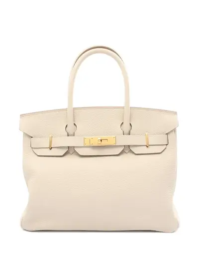 circa 2021 light beige Taurillon Clemence leather two rolled top handles foldover top signature sangles straps twist-lock fastening padlock fastening main compartment internal zip-fastening pocket internal slip pocket set of keys hanging key fob logo-engraved gold-tone hardware Condition: EXCELLENT. This previously owned item is in near-perfect condition with no signs of damage or use.
