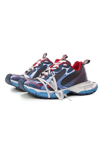 Кроссовки 3XL с потертостями на подошве выполнили из сетки, полиэстера и напоминающего кожу гладкого материала. Модель со светоотражающим названием на язычке декорировали логотипами на мысе и выступающей пятке. Опоясывающие пару шнурки рекомендуется снять перед использованием.