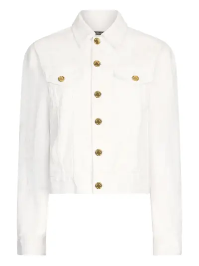 white front button fastening two button-fastening chest pockets two side slit pockets