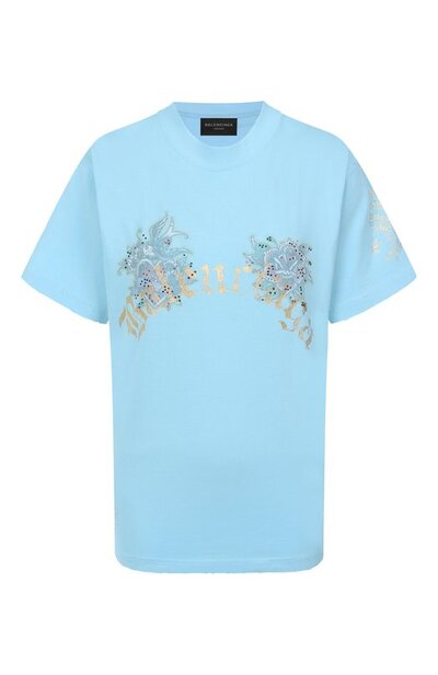 Хлопковая футболка Balenciaga 809122/trvz2 (голубой, lpn29579618)