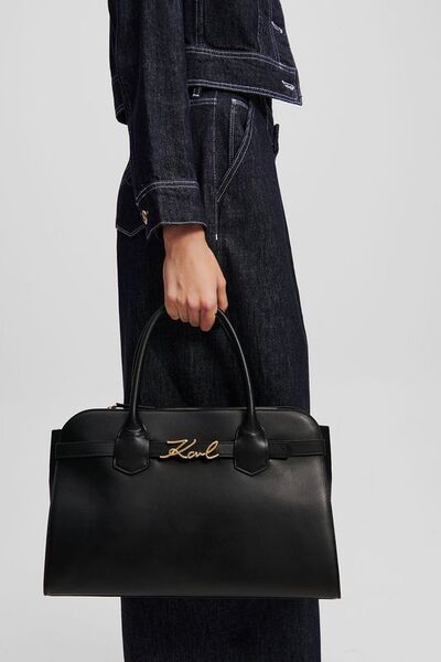 Сумка сэтчел кожаная Signature Karl Lagerfeld 7848952 (чёрный, lpn29586039)
