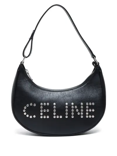 circa 2020-2024s black calf leather top zip fastening adjustable shoulder strap studded logo detail main compartment Condition: GOOD. This previously owned and used item is in good condition with minimal signs of use. This may include fading of material or plating and scratches.
