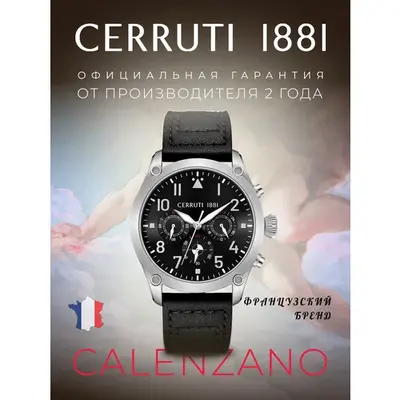 Часы наручные Мужские CERRUTI 1881 CIWGF0042502, Размер корпуса: 42x50mm, Материал корпуса: Сталь, Цвет: Стальной, Вставки: нет, Тип механизма: Кварцевый, Функции: Мультифункциональные, Стекло: Минеральное с сапфировым покрытием, Ремешок: Натуральная кожа, Черный, Застёжка: Классическая пряжка, Цвет циферблата: Черный, Тип индексов: Арабские, Водозащита: 10 ATM История компании Cerruti насчитывает уже более 100 лет, и началась с открытия Антонио Черрути небольшой текстильной мануфактуры в итальянской Бьелле, знаменитой производством качественной шерсти. Настоящий успех пришёл в 1967 году, когда внук Антонио – Нино после многих лет управления фабрикой, создал компанию Cerruti 1881, оказавшую в последствие большое влияние на мужскую моду, неизменно сохраняя основные ценности бренда, подчеркивающие качество, стиль, мастерство и технологии. Сегодня ассортимент бренда Cerruti 1881 включает одежду, мужские и женские ароматы, изделия из кожи, часы и украшения, а также мужские очки, галстуки, обувь, нижнее белье, домашнюю одежду и письменные принадлежности. Новые коллекции часов и украшений Cerruti 1881 появляются 2 раза в год и всегда соответствуют концепции доступной роскоши, предоставляя исключительный стиль по демократичным ценам. Классические и спортивные модели часов созданы с использованием современных технологий: во всех моделях стоят японские механизмы, корпуса отделаны с любовью к деталям, а циферблаты закрывает современное минеральное стекло с сапфировым покрытием, защищающее аксессуар от повреждений.
