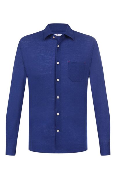 Для пошива рубашки кроя Slim fit использовали слаб-джерси из лиоцелла, хлопка и льна. Модель с контрастными пуговицами из перламутра австралийской устрицы Pinctada Maxima дополнили нагрудным карманом, подчеркнув его стежками фирменного алого оттенка.