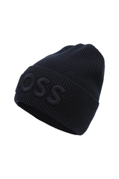 Шапка-бини в рубчик с логотипом Boss by Hugo Boss 6868779 (синий, lpn29607541)