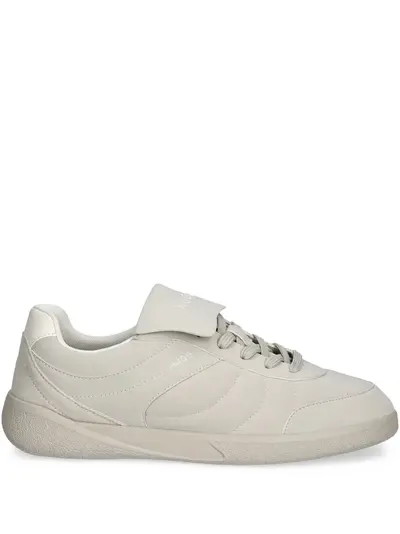 light beige front lace-up fastening flat rubber sole contrasting branded heel counter logo-print tongue