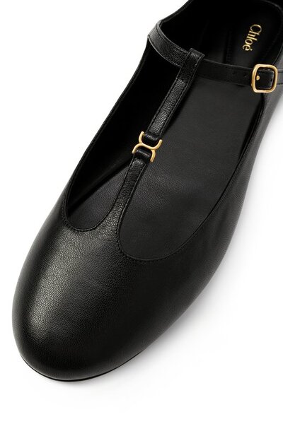 Балетки Marcie сшили из козьей кожи, сертифицированной LWG. Модель с внутренней отделкой из наппы дополнили регулируемым ремешком с Т-образной перемычкой, украшенной фирменной пряжкой.