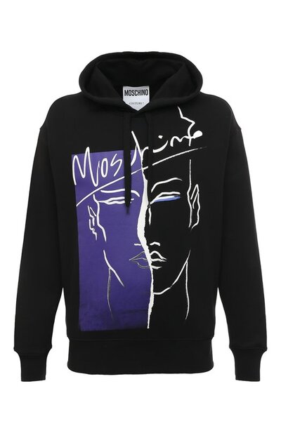 Черное худи с графичным рисунком, одолженным в архивах иллюстратора Тони Вирамонтеса, сшили из мягкого плотного трикотажа. Материал из тонкого органического хлопка хорошо пропускает воздух, но лучше, чем джерси, удерживает тепло тела, адаптируя модель для прохладных дней. Свободный крой изделия со спущенной линией плеч позволяет использовать его для многослойных образов.