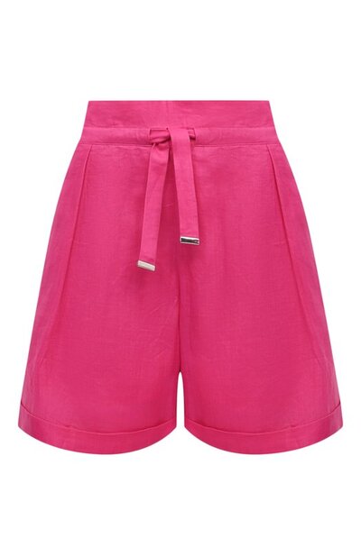 Для пошива шортов яркого оттенка фуксии мастера бренда, основанного Хуго Фердинандом Боссом, использовали легкую ткань рами из волокон крапивы. Экологичный шелковистый материал приятно ощущается на коже и позволяет ей дышать. Свободную модель с боковыми карманами и высокой линией талии дополнили поясом с кулиской.