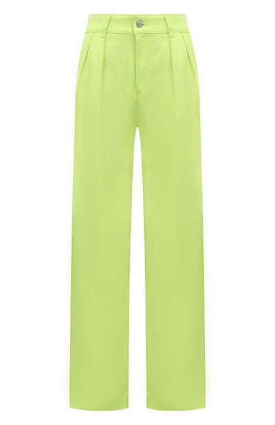 Брюки яркого салатового цвета станут ярким акцентом в повседневном образе с черными топом, пиджаком и пенни-лоферами. Свободную модель с двойными защипами выполнили из лиоцелла, сырьем для которого стала древесина из возобновляемых эвкалиптовых лесов. Тонкий, но плотный текстиль отлично пропускает воздух, позволяя коже дышать, и отличается мягкостью.