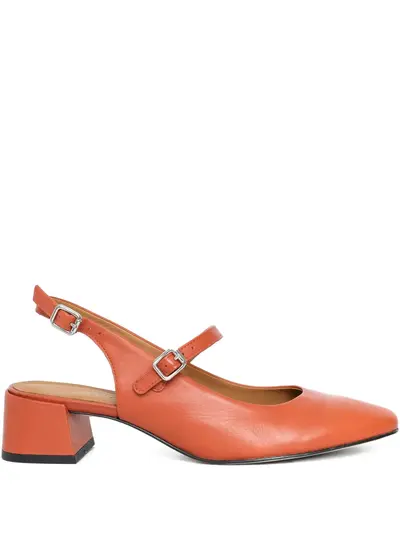 ochre orange two buckle-strap fastenings slingback strap branded footbed almond toe