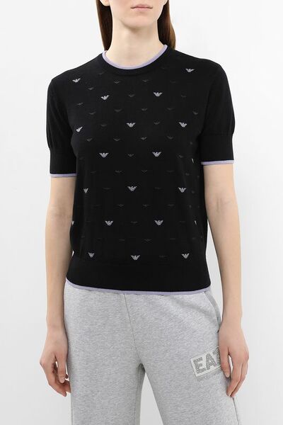 Джемпер хлопковый с коротким рукавом Emporio Armani 7096695 (чёрный, lpn29644229)