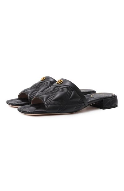 Мюли Quiltie с ромбовидным стеганым узором сшили из тонкой наппы. Перемычку модели на устойчивом каблуке средней высоты украсили золотистой эмблемой VLogo.