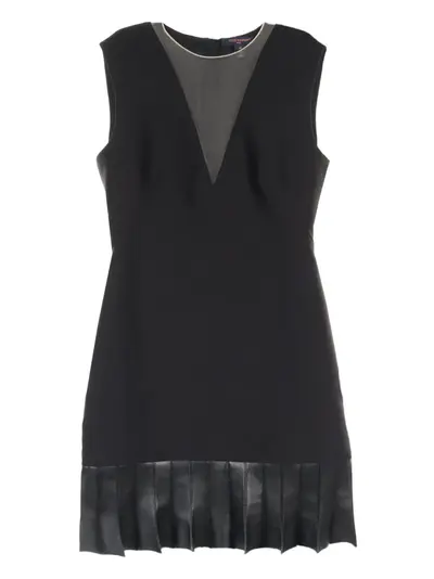 circa 10's black wool blend concealed rear zip fastening round neck sleeveless sheer panels pleated skirt Condition: EXCELLENT. This previously owned item is in near-perfect condition with no signs of damage or use.