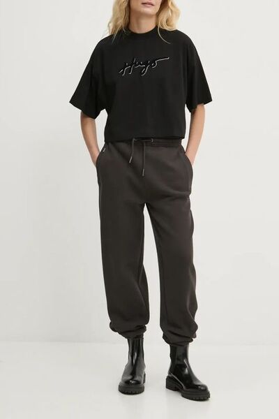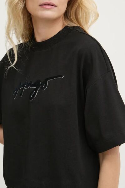 Футболка хлопковая с логотипом укороченная Hugo 6981525 (чёрный, lpn29651534)