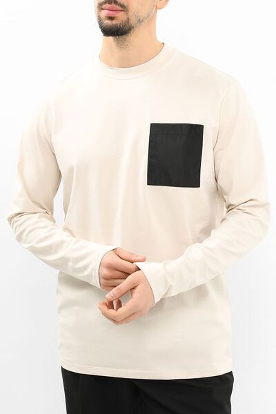 Лонгслив хлопковый с карманом Karl Lagerfeld 7371511 (бежевый, lpn29651730)