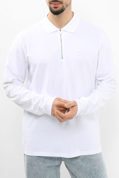 Поло хлопковое с воротником на молнии Karl Lagerfeld 7619917 (белый, lpn29651824)