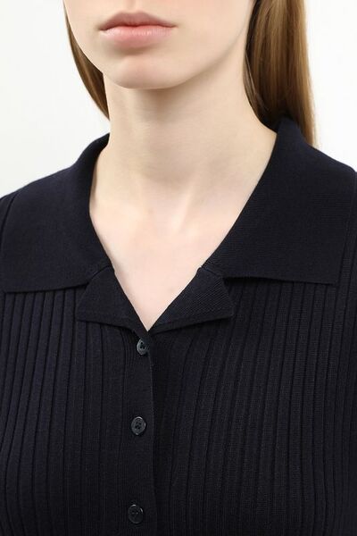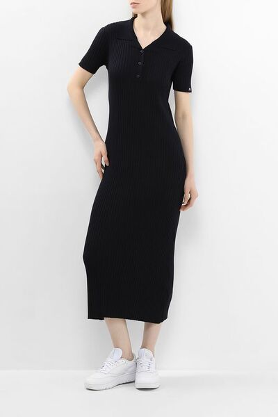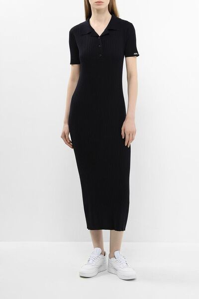 Платье трикотажное с воротником поло в рубчик Pepe Jeans 7701613 (синий, lpn29651857)