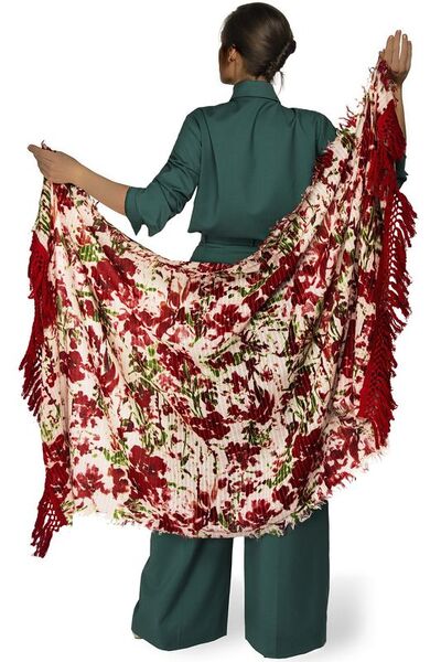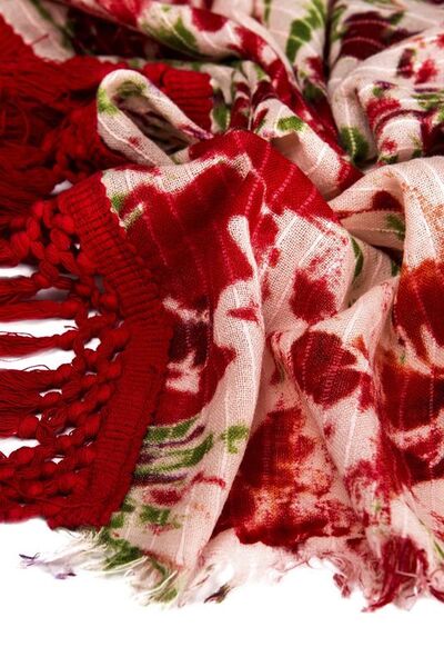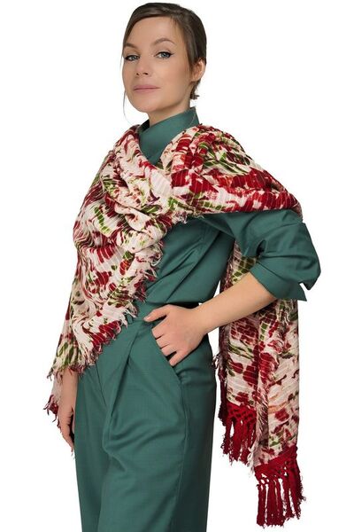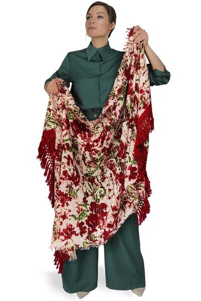 Палантин шерстяной с кистями и принтом Michel Katana 7843687 (красный, lpn29651911)