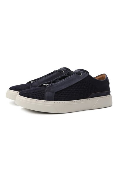 Кеды Gary на контрастной брендированной подошве сшили из сетчатого текстиля. Клапаны шнуровки с металлической пряжкой и фигурную накладку с полосой на заднике изделия выполнили из замши, а пяточный стабилизатор — из кожи.