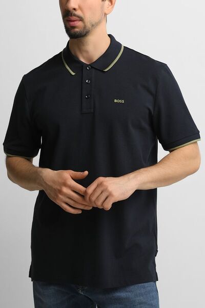 Поло хлопковое с контрастной полосой Boss by Hugo Boss 7612171 (синий, lpn29653475)