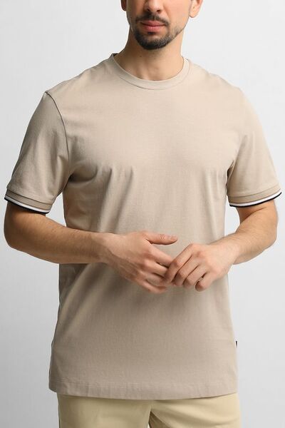 Футболка хлопковая с фирменной полосой Boss by Hugo Boss 7612261 (бежевый, lpn29653476)