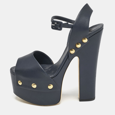 Giuseppe Zanotti Design Navy Blue Leather Betty Ankle Strap Platform Sandals Size 40 1135512 - 1 small
