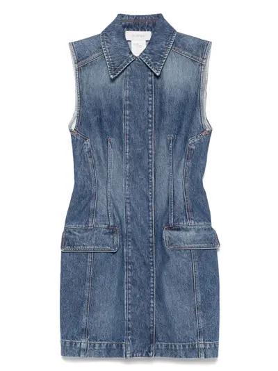 imperial blue concealed front press-stud fastening two side flap pockets classic collar sleeveless
