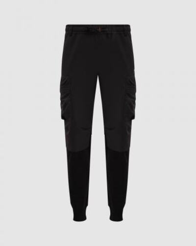 Чёрные брюки Parajumpers. Спортивные комбинированные брюки выполнены из хлопка, эластана и нейлона. Эластичный пояс с регулируемой пряжкой, боковые карманы, накладные карманы на штанинах, эластичные манжеты.