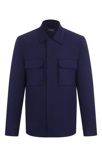 Куртку-рубашку с прямоугольными манжетами и потайным поясом-кулиской дополнили внутренним прорезным карманом и парой нагрудных с клапанами. Модель застегивается молнией, скрытой под штормовой планкой с кнопками.