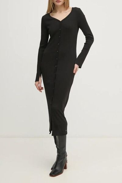 Платье трикотажное на пуговицах Calvin Klein Jeans 7296668 (чёрный, lpn29687131)