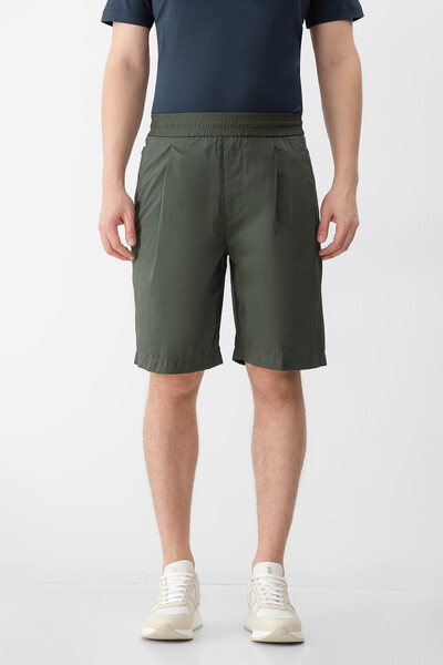 Шорты с классическими защипами сверху от ZILLI. Конструкция изделия прямого силуэта, сшитого на основе хлопка и прочного нейлона в оттенке хаки, предполагает наличие широкого эластичного пояса-резинки и четырёх прорезных карманов. Модель с неброским знаковым декором в виде прямоугольной вставки с тиснёным логотипом спереди станет основой для создания повседневных летних ансамблей.