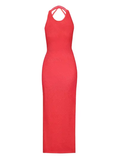 red halterneck sleeveless long length