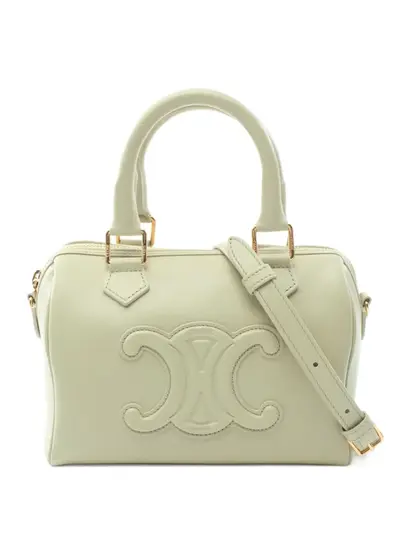 circa 2010s light green leather signature Triomphe motif two rolled top handles adjustable detachable shoulder strap top zip fastening main compartment internal patch pocket full lining gold-tone hardware This piece comes complete with a protective dust bag. Condition: EXCELLENT. This previously owned item is in near-perfect condition with no signs of damage or use.