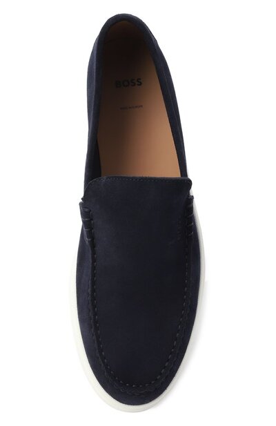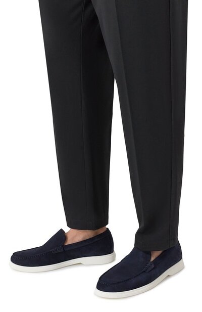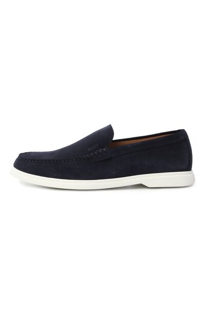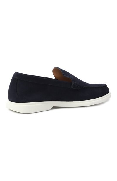 Лоферы Sienne на литой контрастной подошве из полимера выполнили из замши. Союзку модели с рельефным швом, повторяющим форму мыса, украсили тисненым логотипом марки.