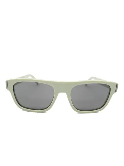 circa 2020s light olive green square frame tinted lenses straight arms curved tips Original box included. Condition: UNWORN. This item is previously owned but remains unworn and in its original condition. However, it does not come with its original tags.