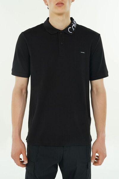 Поло хлопковое с логотипом на воротнике Calvin Klein 6658497 (чёрный, lpn29719340)