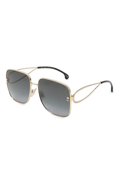Оправа солнцезащитных очков изготовлена вручную из металла с золотистым финишем. Градиентные нейлоновые линзы украшены миниатюрными заклепками-цветами. Рельефные дужки дополнены ацетатными заушниками.