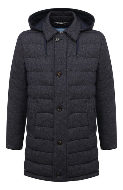 Для пошива темно-синего стеганого пуховика мастера неаполитанской марки из семьи Kiton использовали мягкую эластичную ткань на основе премиальной шерсти, отборного хлопка и нежного кашемира. Материал, обработанный водоотталкивающим средством, не продувается ветром и хорошо удерживает тепло, а слой тщательно очищенного легкого пуха обеспечивает комфорт даже в очень холодную погоду. Длина модели со съемным капюшоном позволяет носить ее и с повседневной одеждой, и с формальным костюмом.
