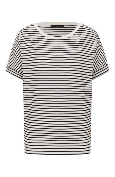 Футболку в контрастную полоску выполнили из джерси на основе лиоцелла и хлопка. Спереди модель дополнили миниатюрной брендированной подвеской.