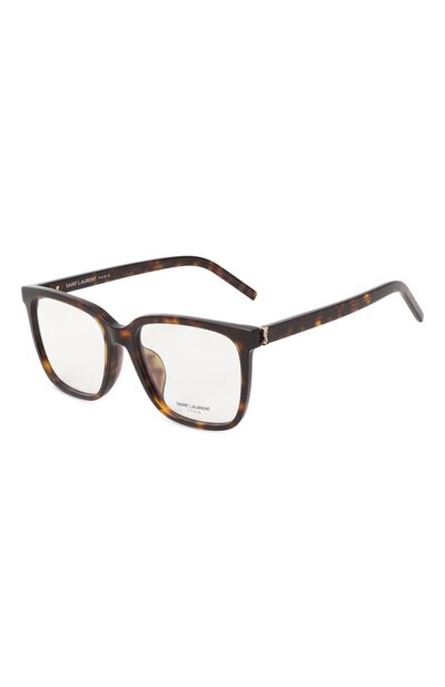 Оправу из ацетата с черепаховым узором украсили миниатюрной монограммой Кассандра по бокам. Модель с армированными дужками и литыми носоупорами дополнили прямоугольными демонстрационными линзами.