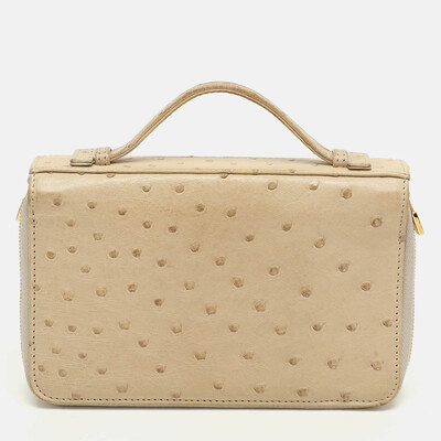 Luxury in every stitch. This Loro Piana ivory ostrich wallet zips open to reveal a thoughtfully organized interior. It is fitted with a top handle.