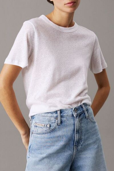 Футболка из хлопка и льна Calvin Klein 7301456 (белый, lpn29747404)