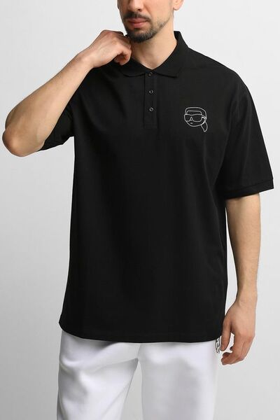 Поло хлопковое с логотипом Karl Lagerfeld 7377994 (чёрный, lpn29752547)