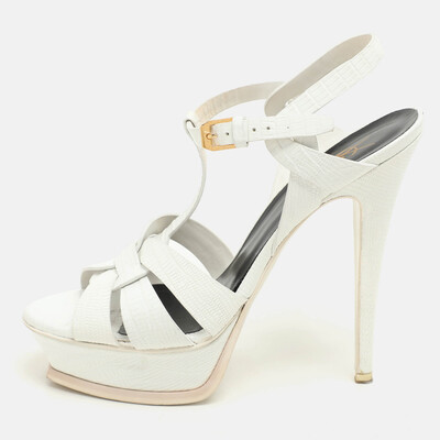Saint Laurent White Lizard Embossed Leather Tribute Platform Sandals Size 39 1144544 - 1