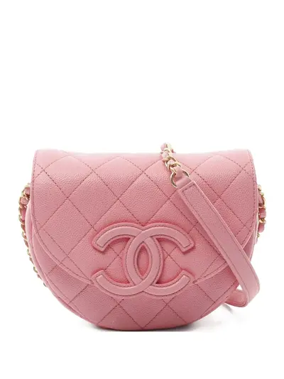 circa 2021 light pink caviar leather diamond quilting signature interlocking CC logo leather and chain-link shoulder strap foldover top with magnetic fastening main compartment internal patch pocket internal logo stamp full lining rear patch pocket gold-tone hardware Serial Number: KA407CE2 This item comes with an original authenticity seal. This piece comes complete with a protective dust bag. Condition: EXCELLENT. This previously owned item is in near-perfect condition with no signs of damage or use.