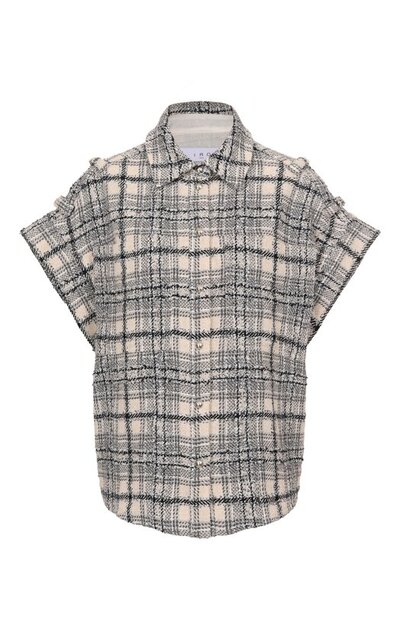 Клетчатый жилет Samie с короткими рукавами и шлевками на плечах выполнили из хлопкового твида с добавлением льна и шелка. Модель с нагрудными карманами застегивается серебристыми кнопками.