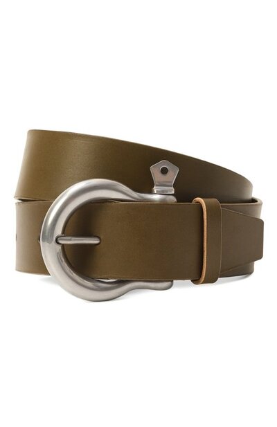 Для изготовления ремня Shackle с одной шлевкой использовали гладкую кожу. Аксессуар регулируется по длине фигурной латунной пряжкой.