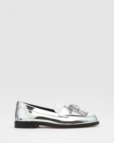Мокасины Fabi из натуральной кожи в серебристом цвете. Мокасины с кисточками в серебристом цвете добавит стиля даже самым строгим образам. Модель выполнена из натуральной металлизированной кожи, на невысоком устойчивом каблуке. Акцент дизайна пары - декоративные кисточки из кожи спереди и небольшие металлические заклёпки на ранте. Сочетайте эту пару с любыми образами из делового дресс-кода, а также с образами в стиле casual. Подкладка, стелька и подошва - натуральная кожа.